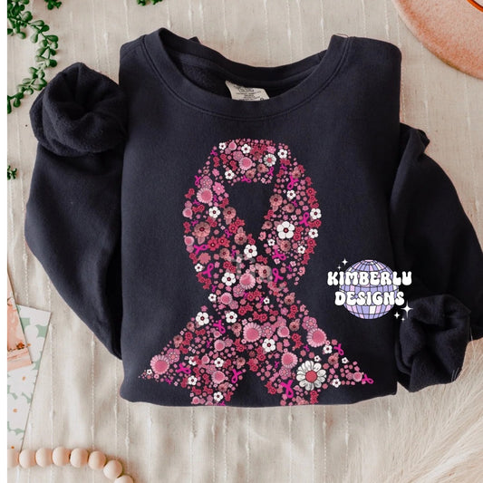 Floral Breast Cancer Awareness Ribbon